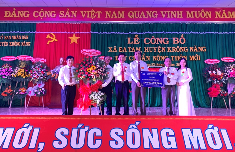Phát biểu chúc mừng và trao bằng công nhận xã đạt chuẩn NTM, các đ/c lãnh đạo tỉnh Đăk Lăk và huyện Krông Năng đã ghi nhận những kết quả mà Đảng bộ và nhân dân xã EaTam đạt được trong xây dựng NTM. Đồng thời nhấn mạnh, xây dựng nông thôn mới là sự nghiệp lâu dài của toàn Đảng, toàn dân, cả hệ thống chính trị. Trên cơ sở kết quả đã đạt được, xã Ea Tam cần tiếp tục tuyên truyền sâu rộng, phát huy vai trò của người dân trong xây dựng nông thôn mới, huy động nguồn lực để tiếp tục đầu tư, duy tu bảo dưỡng các công trình, quản lý vận hành có hiệu quả; chú trọng phát triển sản xuất, đẩy mạnh tái cơ cấu nông nghiệp, thực hiện hiệu quả chương trình mỗi xã một sản phẩm OCOP, làm tốt công tác bảo vệ môi trường nông thôn, đẩy mạnh công tác cải cách hành chính, đảm bảo tốt công tác an ninh chính trị, trật tự an toàn xã hội trên địa bàn để tiến tới xây dựng xã nông thôn mới nâng cao, nông thôn mới kiểu mẫu trong những năm tiếp theo.